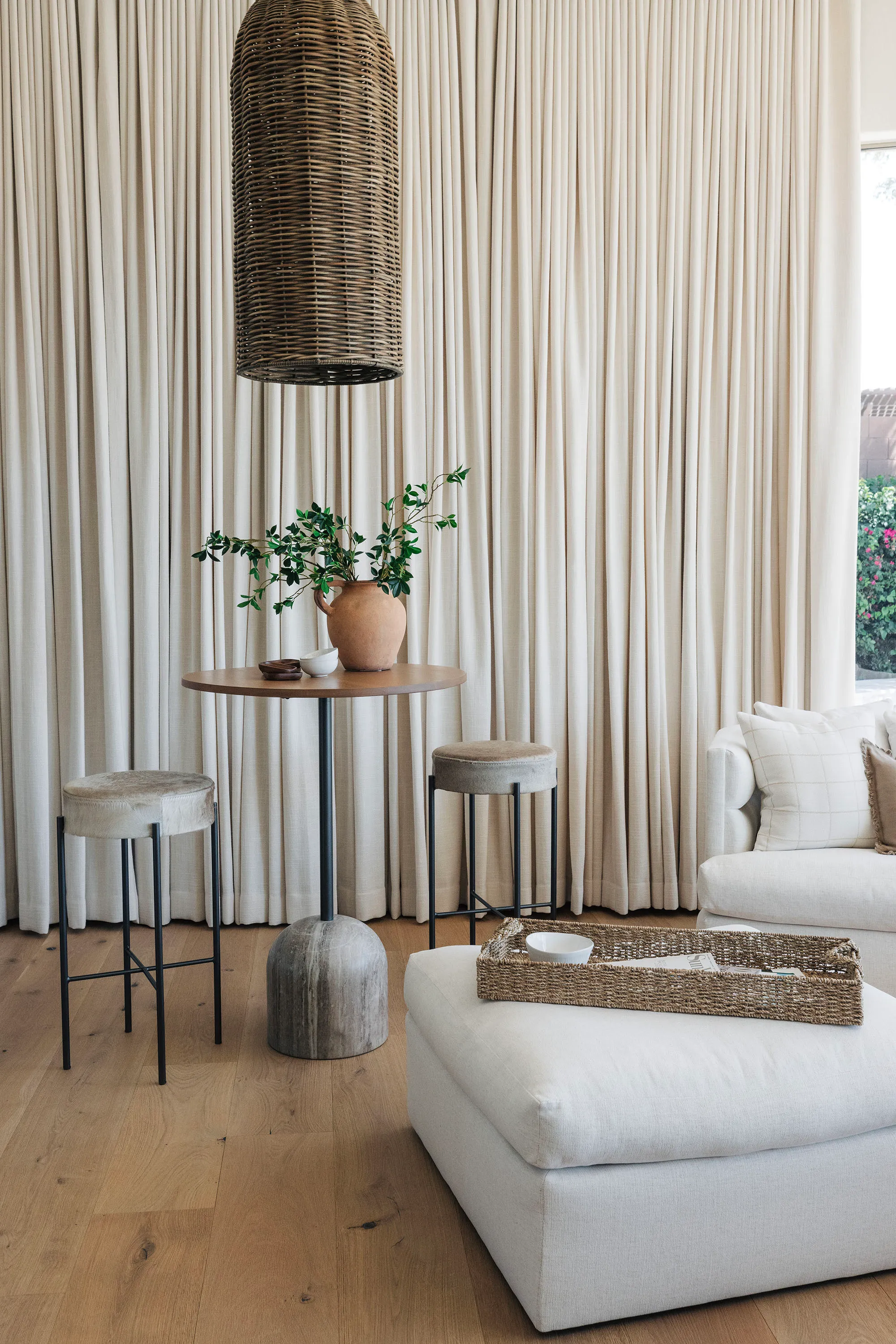 By utilizing Sherwin Williams Shoji White as a continuous thread, we create a subtle, neutral envelope that holds the complexity of daily life. The organic interaction of stone, wood, and textile against this warm backdrop solves the paradox of the open plan: creating a home that feels intentionally zoned, yet beautifully whole.
