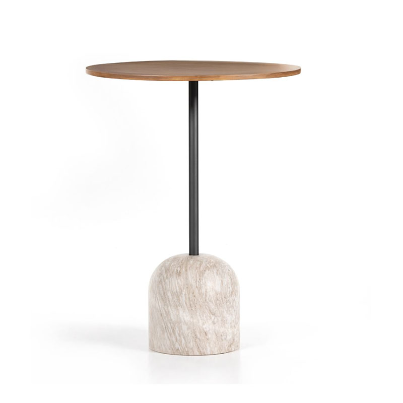 Adjacent to the living area, the dining zone is defined by a shift in texture and color. Here, the palette moves toward leather seating, honed stone objects and rough wood detailing, that stand out against the soft white walls. By carrying the same wood stains from the living area but applying them to structural dining elements, we maintain cohesion while marking tis zone as a functional, gathering-centric space.
